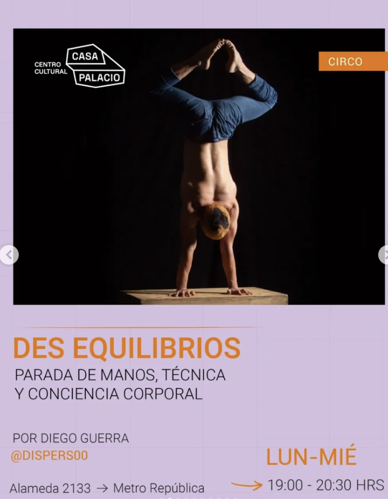 En este taller, los participantes aprenderán las bases de la parada de manos, incluyendo técnica y conciencia corporal. A través de ejercicios prácticos y guiados, los asistentes desarrollarán su fuerza, flexibilidad y coordinación, mientras aprenden a escuchar y respetar sus lÃmites corporales.