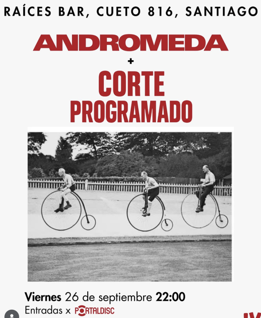 VIERNES 26/09 22HRS@andromedabandaoficial + @corteprogramado se presentarán el viernes 26 de septiembre a las 22hrs en @raices.bar