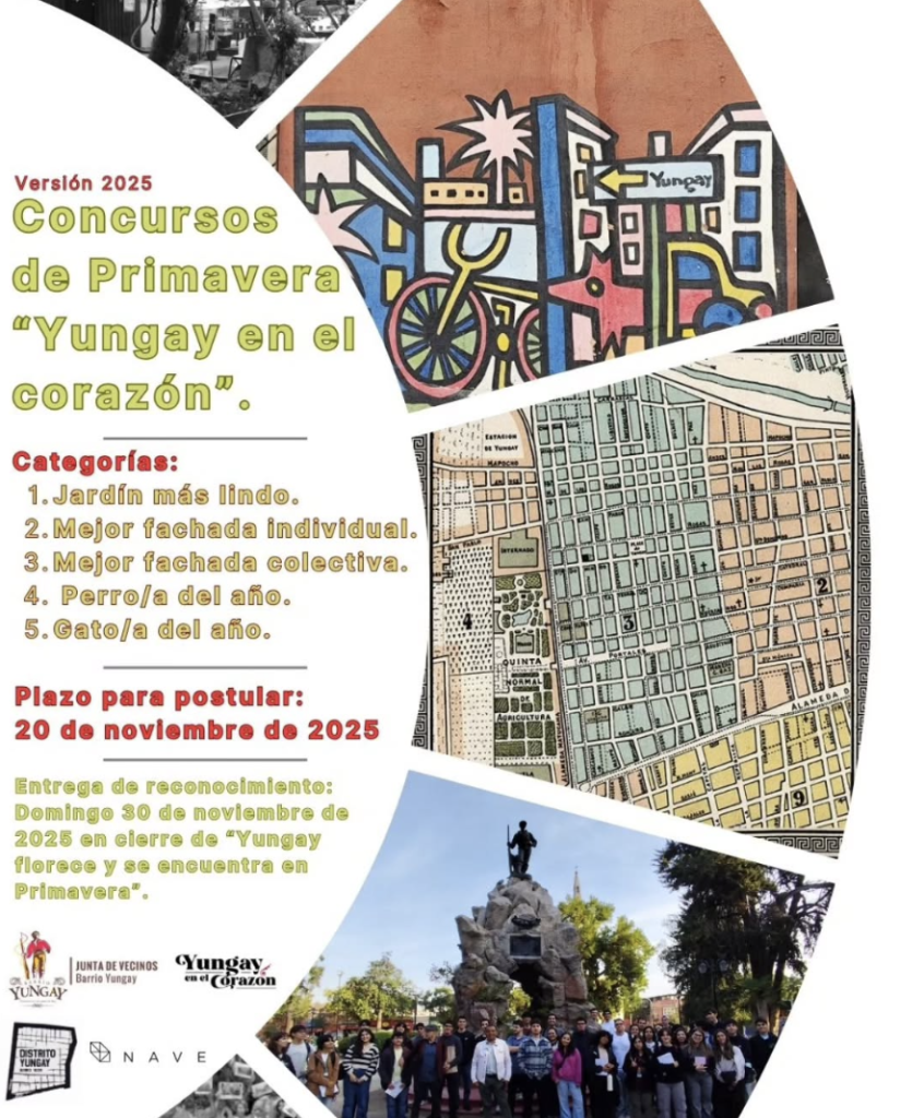 La Junta de Vecinos Barrio Yungay, Distrito Yungay Nave, y Yungay en el Corazon, en tercera versión, invitan a vecinxs, locatarios y la comunidad en general, a participar en el Concurso de Primavera “Yungay en el corazón” 2025.