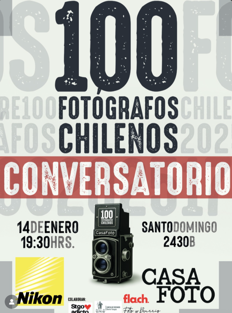 Este 14 de enero a las 19:30 hrs te invitamos al Conversatorio “100 Fotógrafos Chilenos” en Casa Foto (Santo Domingo 2430B).