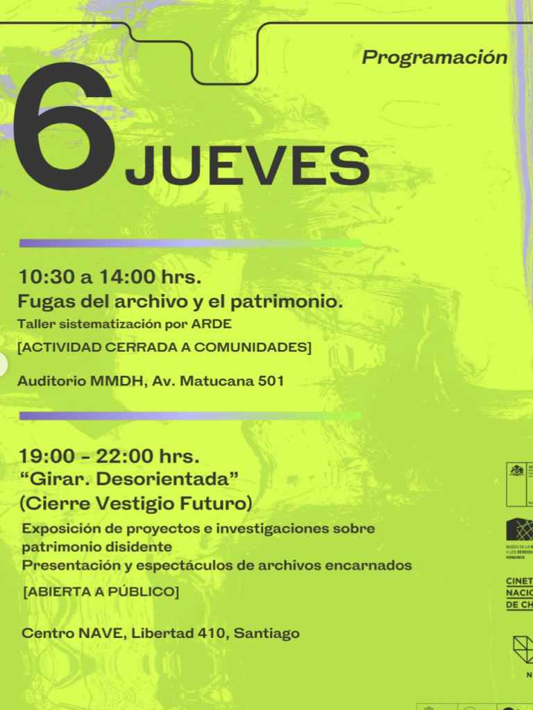 Quedan seis días para que comience Vestigio Futuro y estamos muy felices de compartir la programación de este encuentro internacional de memorias y patrimonios disidentes en @museodelamemoria@centro_nave y @cinetecanacionalcl, que se realizará del 3 al 6 de noviembre🔮