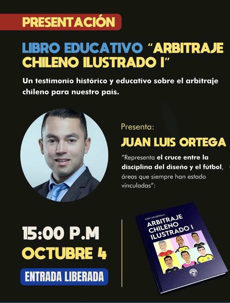 Este sábado 4 de octubre, tendremos la presentación del libro “Arbitraje Chileno Ilustrado” por Juan Luis Ortega, docente y diseñador en Comunicación Visual.