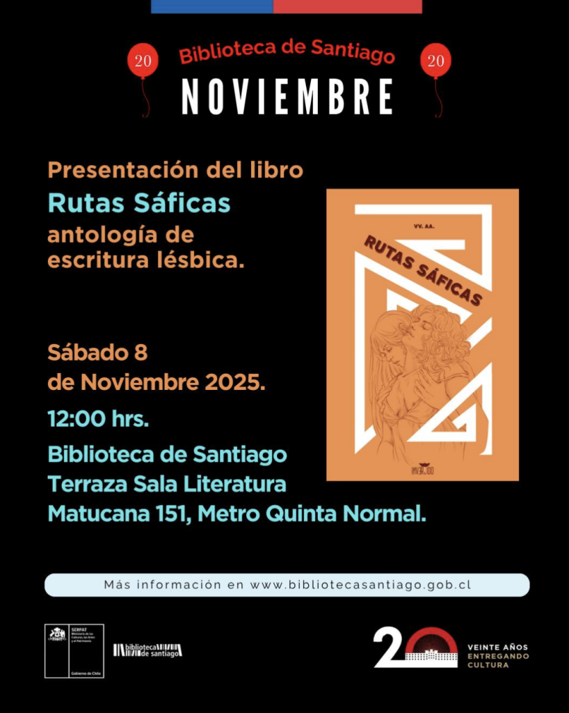 Te invitamos a la presentación del libro “Rutas Sáficas” que reúne diversas voces en torno a la escritura lésbica, con cuentos y poemas que exploran la identidad desde múltiples ámbitos, en una práctica de complicidad, escucha y afecto colectivo.